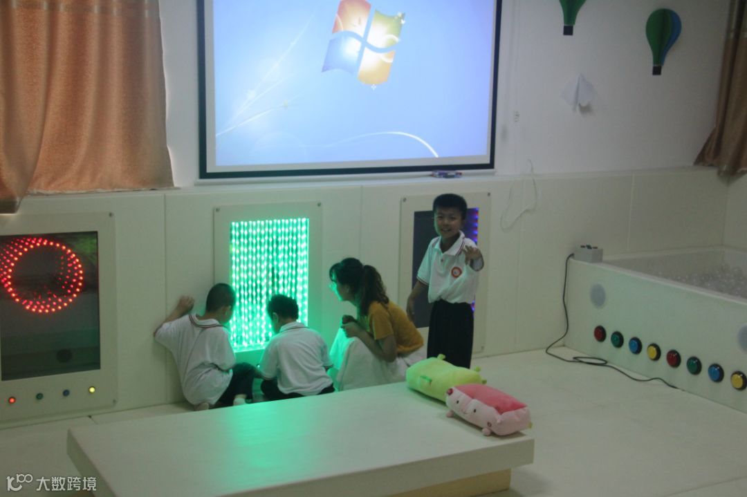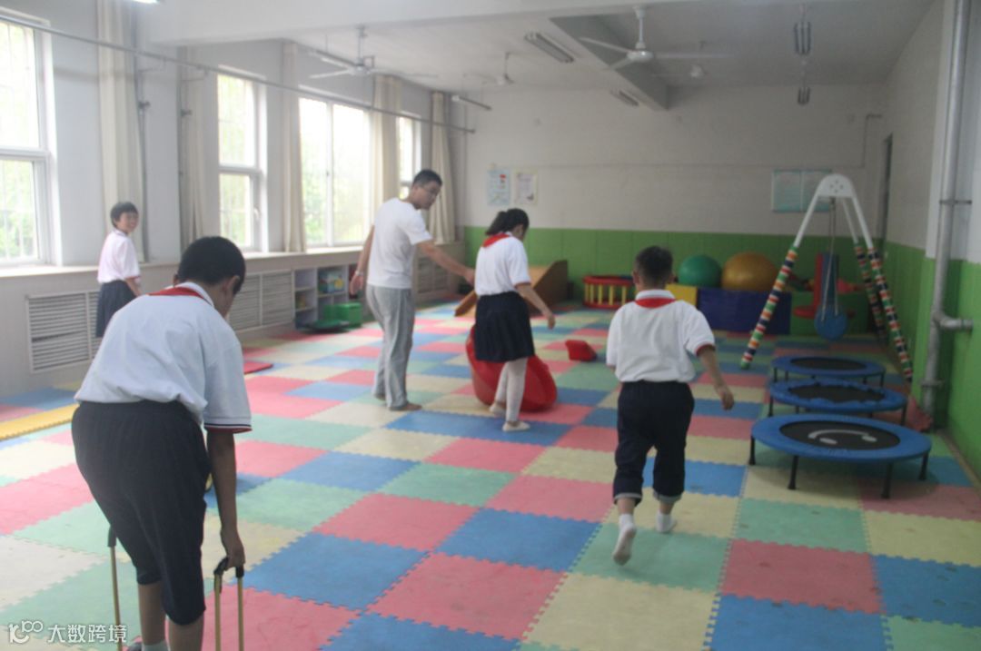 做完游戏后老师们带领我们参观了学校,学校秉承简洁、实用、无障碍的建筑风格,配有适合听障和智障专业教育教学需要的体能训练、听力测听、言语康复、感觉统合、蒙台梭利、多媒体、计算机等专用康复教室,为特殊学生的学习、生活创造了优良的环境。