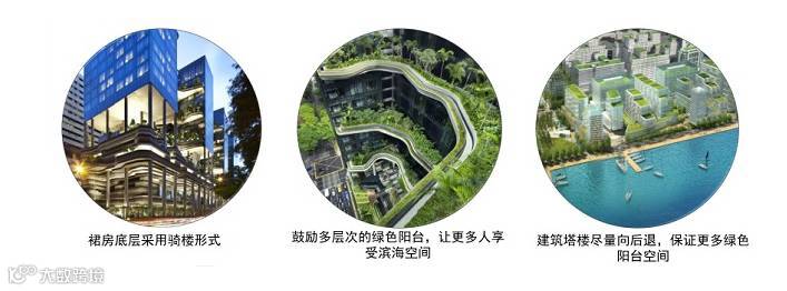 同时,将滨水区裙房首层设置为骑楼,二层及二层以上裙楼设置为多层退台形式,创造更多的滨水生活空间。