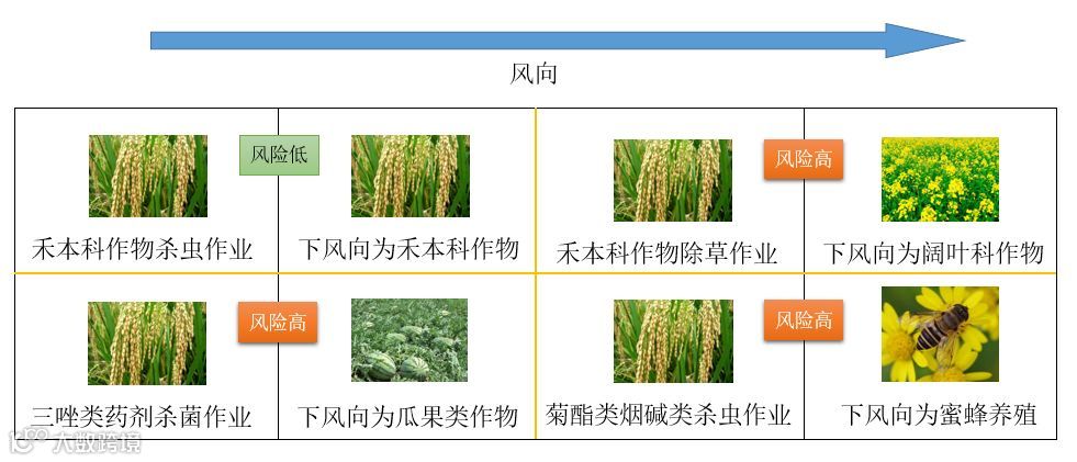 2)注意作业区域下风向是否存在对药物敏感的动植物,避免产生飘移药害 。在作业除草剂、三唑类杀菌剂时应特别注意,避免产生飘移药害;