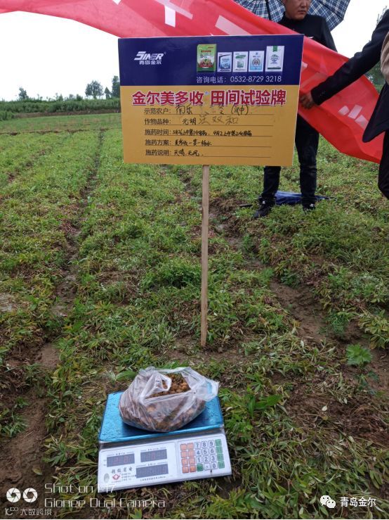 让客户满意让农户满意,在2018年元胡分别亩产500-800斤的情况下,使用金尔美多收能达到亩产1400斤左右,客户满意、零售商满意、农民满意,看看农民和零售商满意的笑容