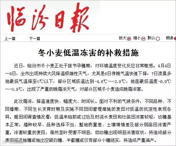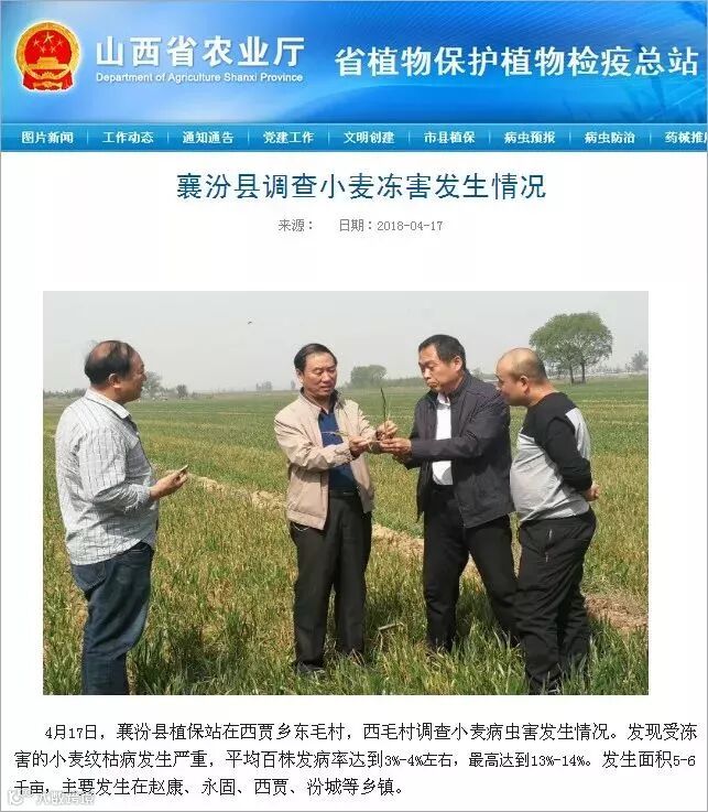 4月5号前后正是小麦抽穗的时间,而那两天温差很大,达到二十多度,而且是十几年没有遇到的极端天气状况。