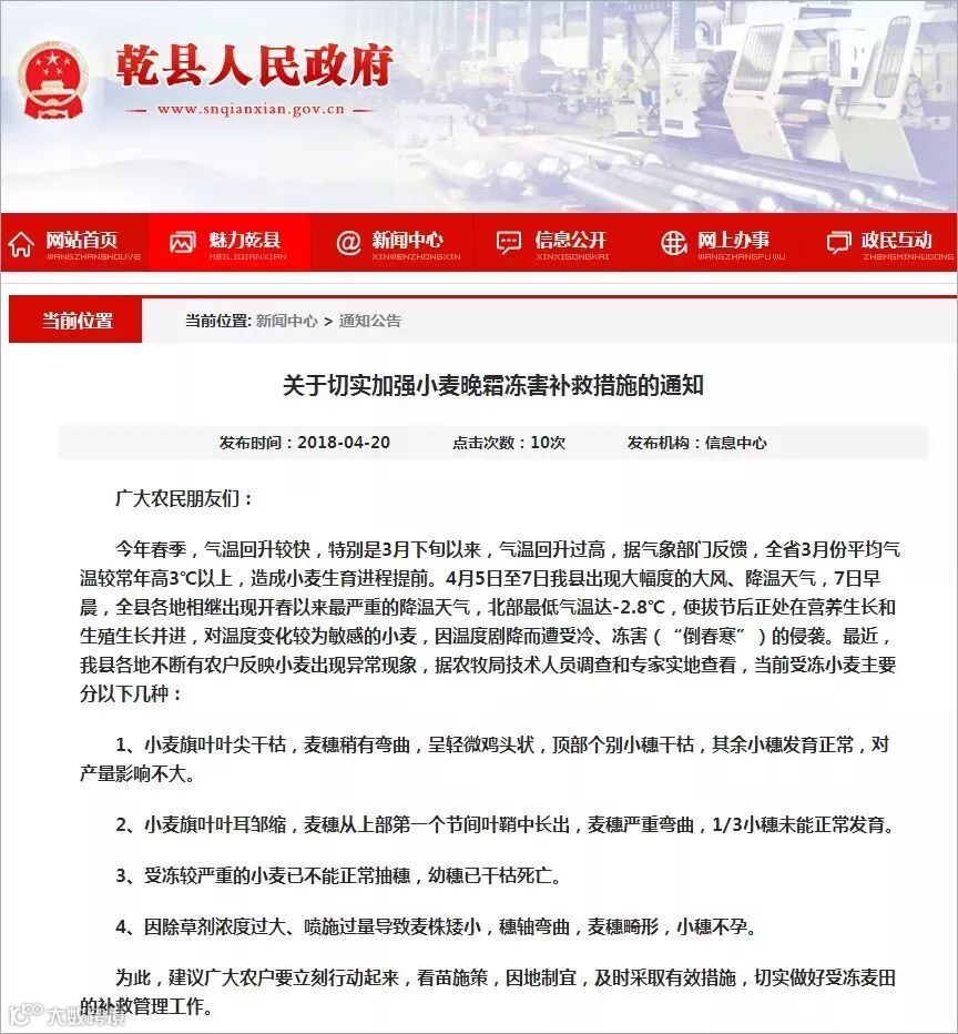 小麦品种多样,特点各异,然而并不是十全十美,比如丰德存5号小麦虽然高产,但是不抗寒潮。而此次自然灾害现象,新乡市和延津县政府相关部门,也已经出台了相应的解决办法。