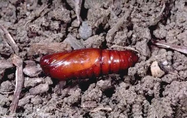 玉米粘虫:蛹红褐色,有光泽,腹部5—7节背面前缘各有一列齿状点刻。