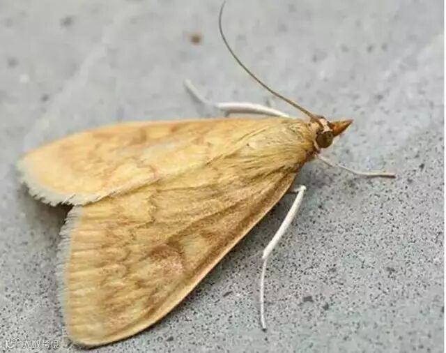 玉米螟:成虫黄褐色,雄蛾体长10-13毫米,翅展20-30毫米,体背黄褐色,腹末较瘦尖,触角丝状,灰褐色,前翅黄褐色,有两条褐色波状横纹,两纹之间有两条黄褐色短纹,后翅灰褐色;雌蛾形态与雄蛾相似,色较浅,前翅鲜黄,线纹浅褐色,后翅淡黄褐色,腹部较肥胖。
