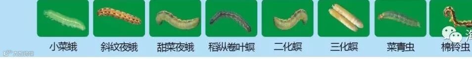 稻纵卷叶螟、夜蛾类、卷叶蛾、棉铃虫、黑头虫等