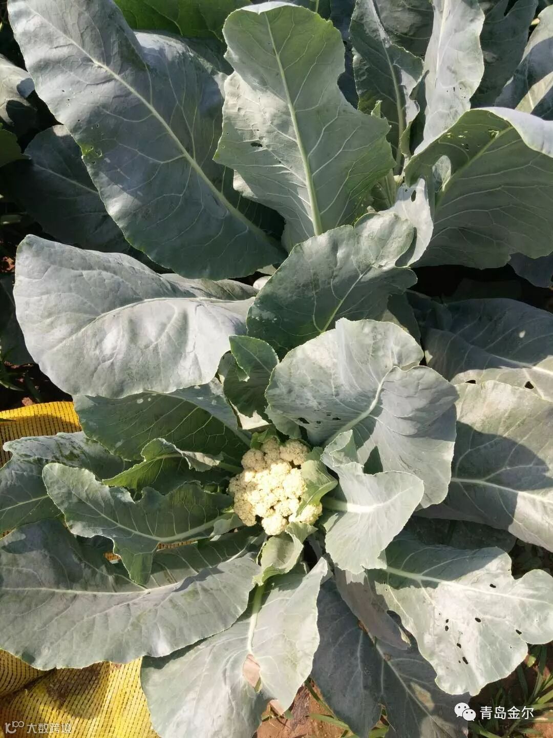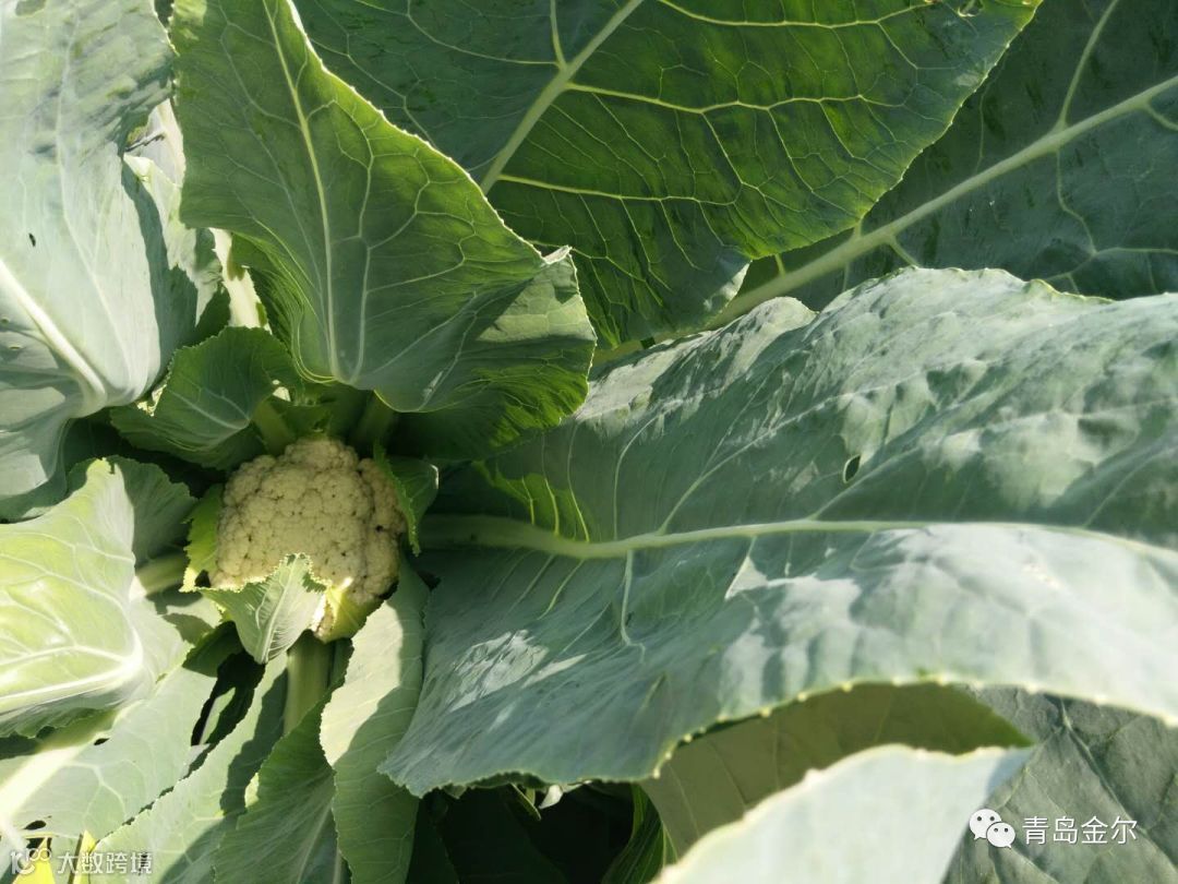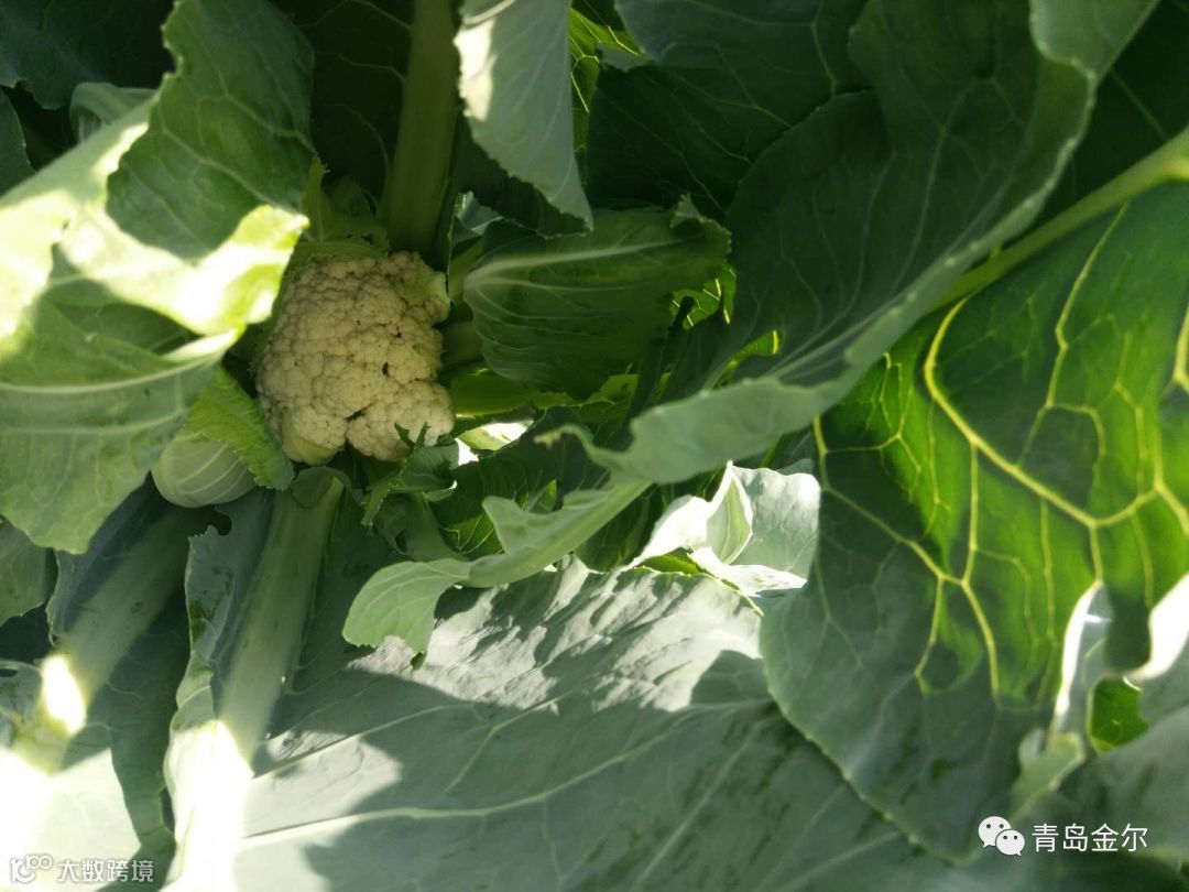 没用美多收的菜花,长势一般,花较小,对比明显。