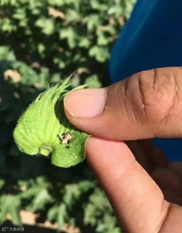 棉铃虫,棉花主要害虫之一,主要危害棉花生长点、蕾、花,可使受害的蕾不能正常开放,严重时枯黄脱落;使受害的花铃,为黑褐色,水浸状斑,严重时棉铃上布满黑点,僵化脱落。 棉铃虫会把卵产在幼嫩的叶子和花蕾上,现在受害的棉田田间可以看到,以便孵化的幼虫可就地能吃到食物。当前一代棉铃虫进入羽化盛期,田间以卵和低龄幼虫为主。