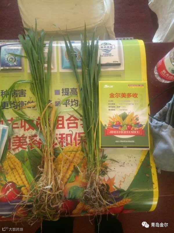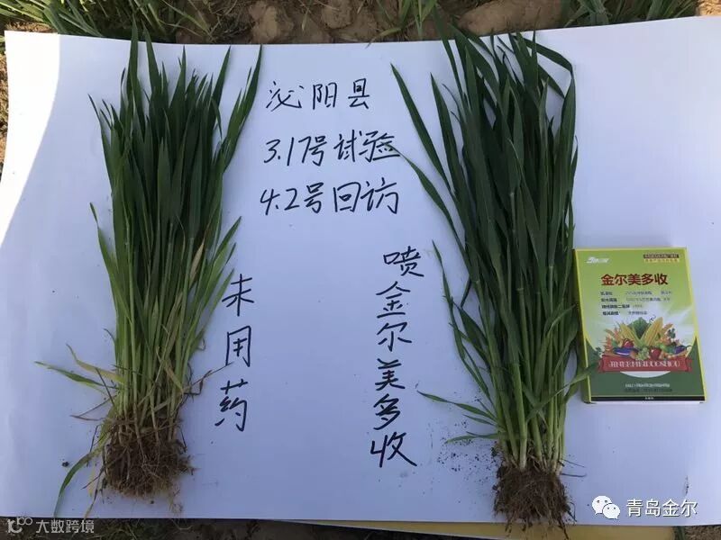 左侧使用美多收产品,根系发达,叶片无病斑。