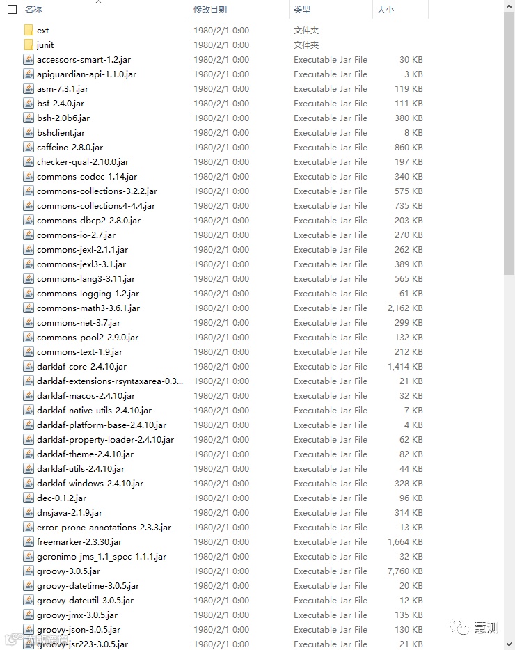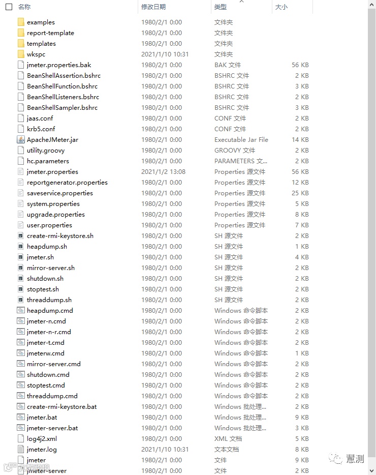 JMeter安装包解压后的根目录如下图: