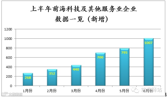 而入驻前海的现代物流业企业,6月份则新增607家,上半年实现新增2151家,总数达5183家,较年初增长70.9%;入驻前海的信息服务业企业实现半年新增1697家,总数达3994家,较年初增长73.8%。