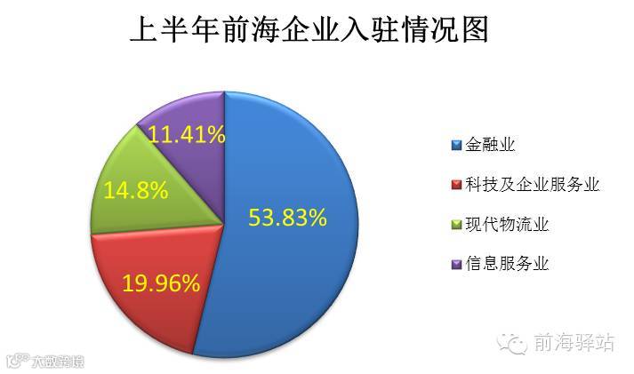 从入驻企业的产业分类来看,金融创新作为前海承担的发展使命和重点改革方向,随着自贸区的挂牌也迎来了政策叠加优势,金融类企业数量继续领跑。今年上半年,入驻前海的金融业企业就新增7389家,其中仅6月份就新增1726家,这将该类企业的总数推至18848家,较年初增长64.4%,占到前海企业总数的53.8%。