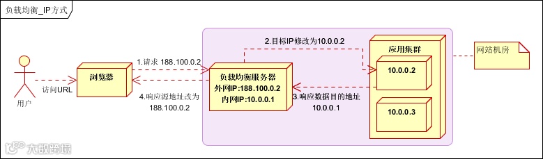 此种方式有时也用于单台均衡设备的性能不能满足大量连接请求的情况下。是目前大型互联网公司,普遍使用的方式。