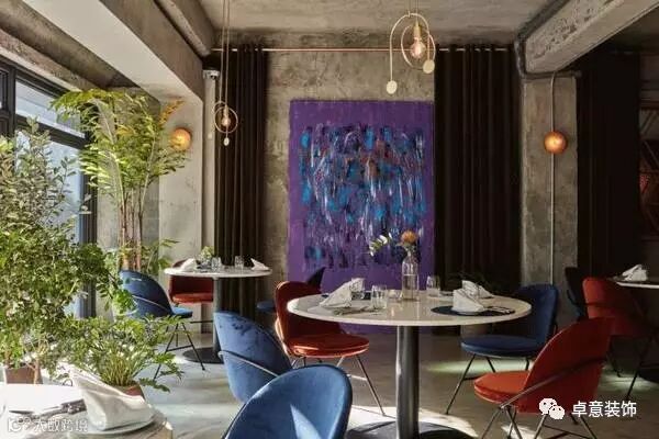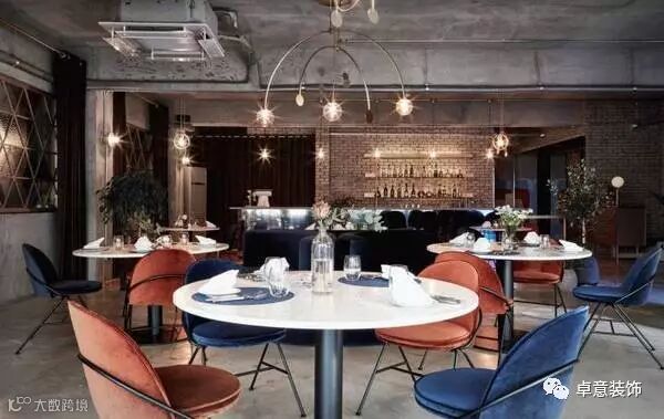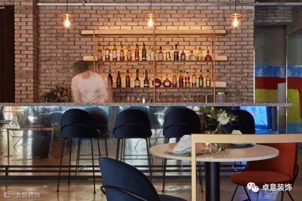 蓝色和红色的餐椅也是酒馆的一个亮点