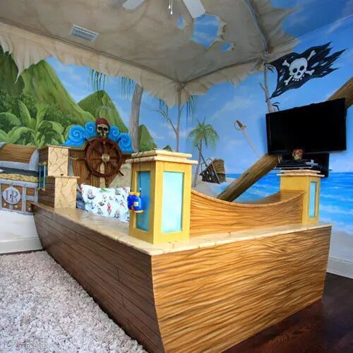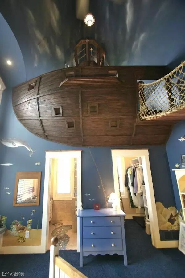 一开始他们尝试过很多主题比如宇宙飞船,跑车,城堡概念等等,但是这都不是非常的满意,直到最终选择了“海盗船”作为房间的主题。设计师SteveKuhl说:“我们创作过许多类型的房间,这还是第一次。最终我们在许多方案对比中产生了这个令人满意的结果,就好像刚刚健身完后身体带着轻微的痛但整个人是很放松的感觉非常棒。