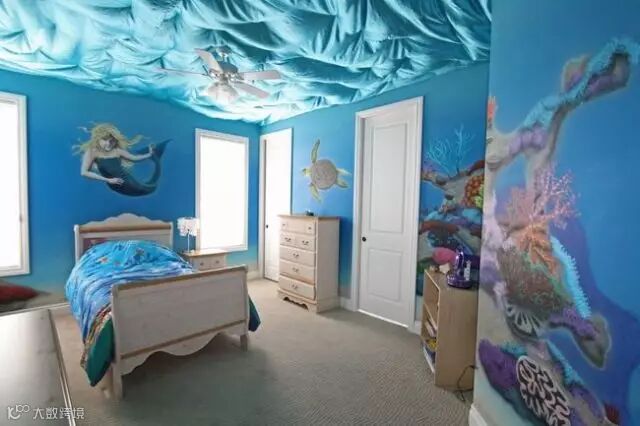 而墙面上绘制成海底世界的样子,就像船犹如漂浮在海中。