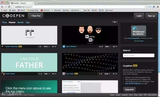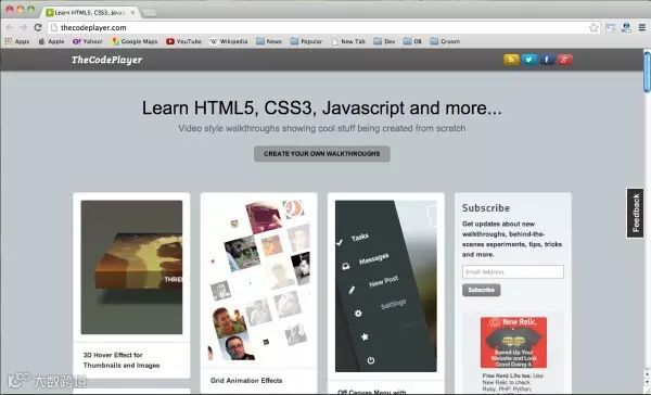 The code player能帮助你学习HTML5, CSS3, Javascript以及更多的高级技术,提供有视频和源代码。