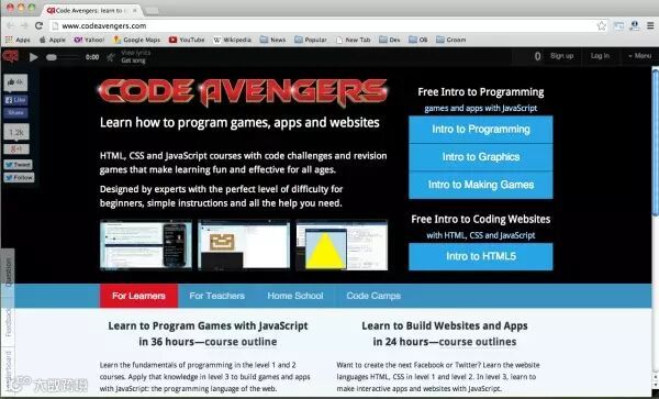 Code avengers 上有HTML,CSS,JavaScript相关的课程,富有挑战性,你可以学到怎样编写游戏,应用程序和网站。初学者在这里也可以学到很多东西,做出一些很棒的项目。