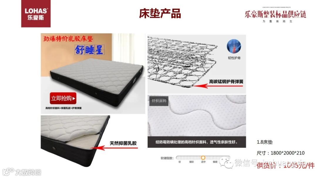 乳胶床垫,高碳锰钢护脊弹簧,针织面料。只需1005元。