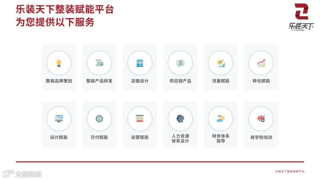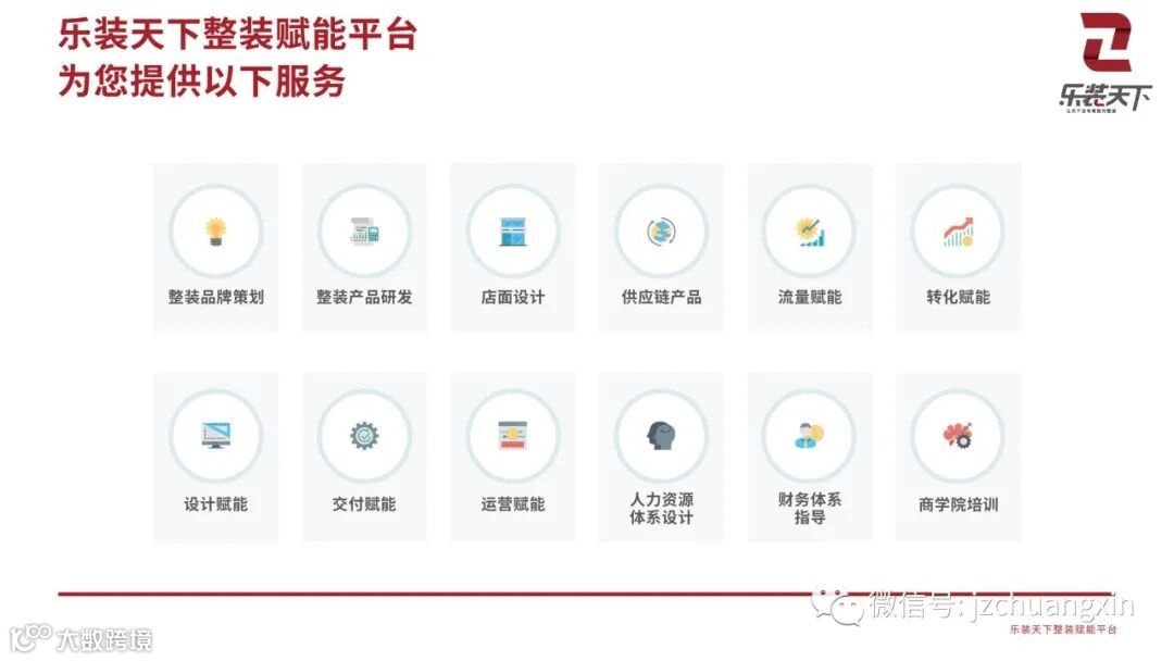 最后再来看一下乐装天下整装赋能平台十二大服务版块,这是一整套可复制的成功体系,希望有更多想做整装的伙伴能够加入乐装天下的平台。
