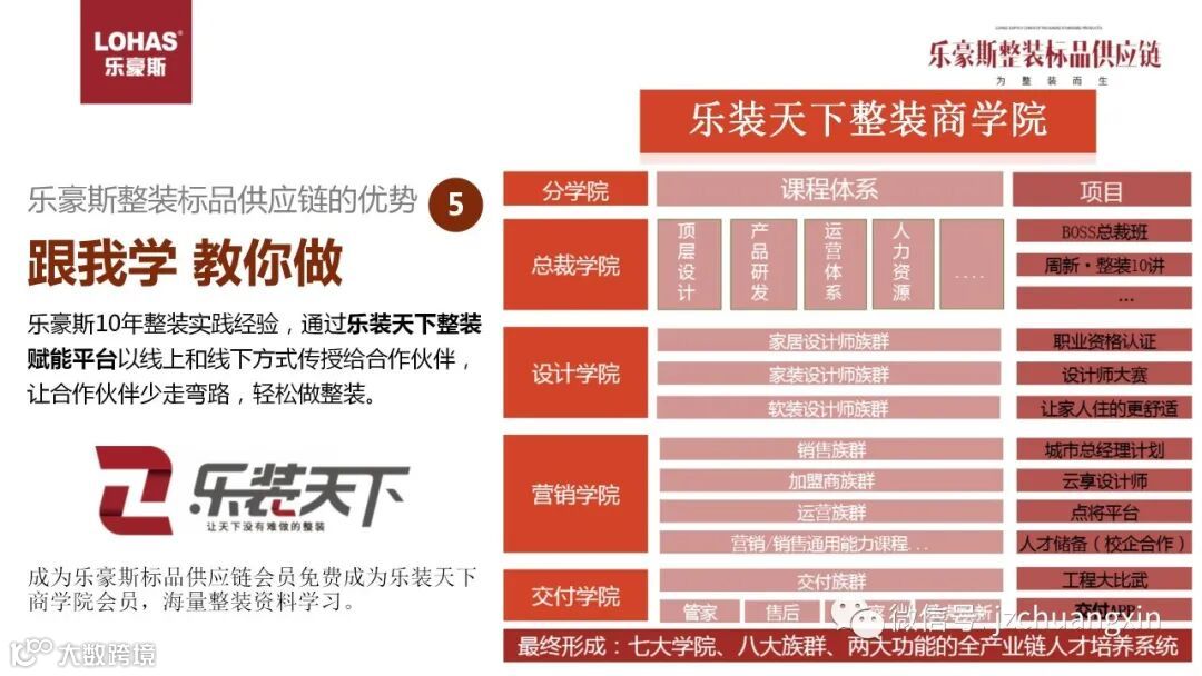 乐装天下整装商学院作为乐装天下整装赋能平台的一条分支,拥有完善的课程体系,针对不同族群,将乐豪斯多年沉淀下的可复制的运营体系传授给大家,成为乐装天下会员即可同时享受乐装天下整装商学院的会员