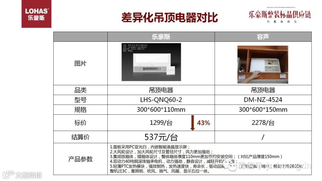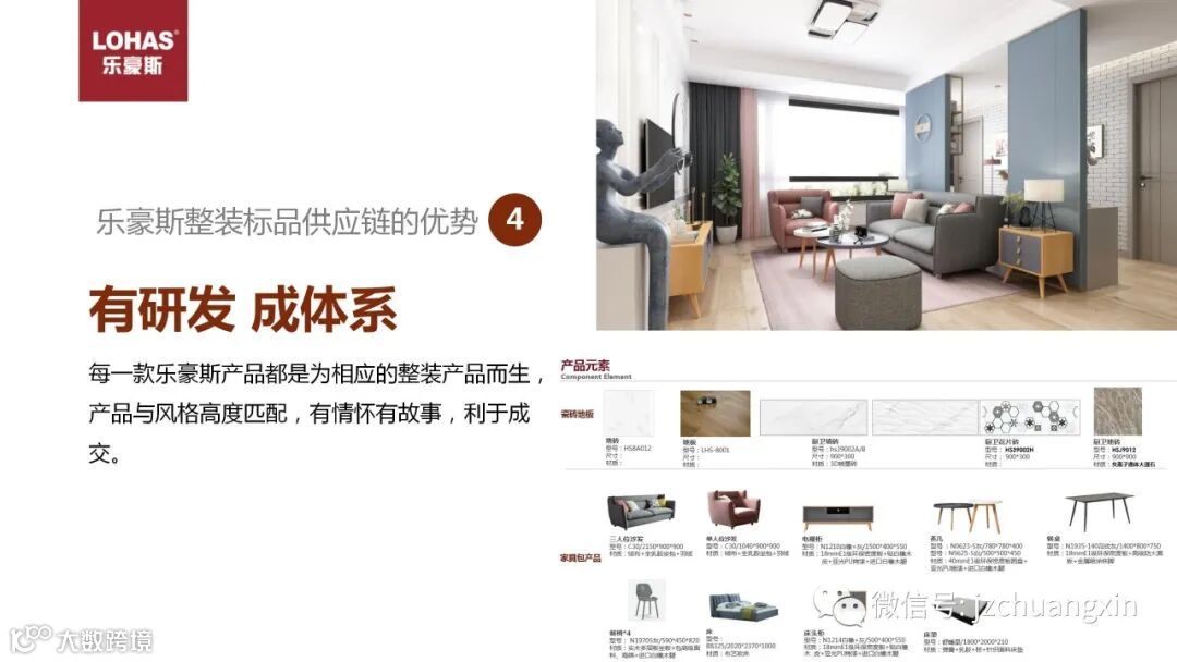 战略大师迈克尔·波特说过,有两种竞争战略选择,一种是差异化战略,一种是低成本战略,乐豪斯自有品牌产品,针对整装专门研发,紧跟一线品牌流行趋势,与其它整装公司淘汰货产品形成差异化,没有比价,可自行定价。乐豪斯标品供应链不但能提供性价比高的产品,还能提供差异化的产品。