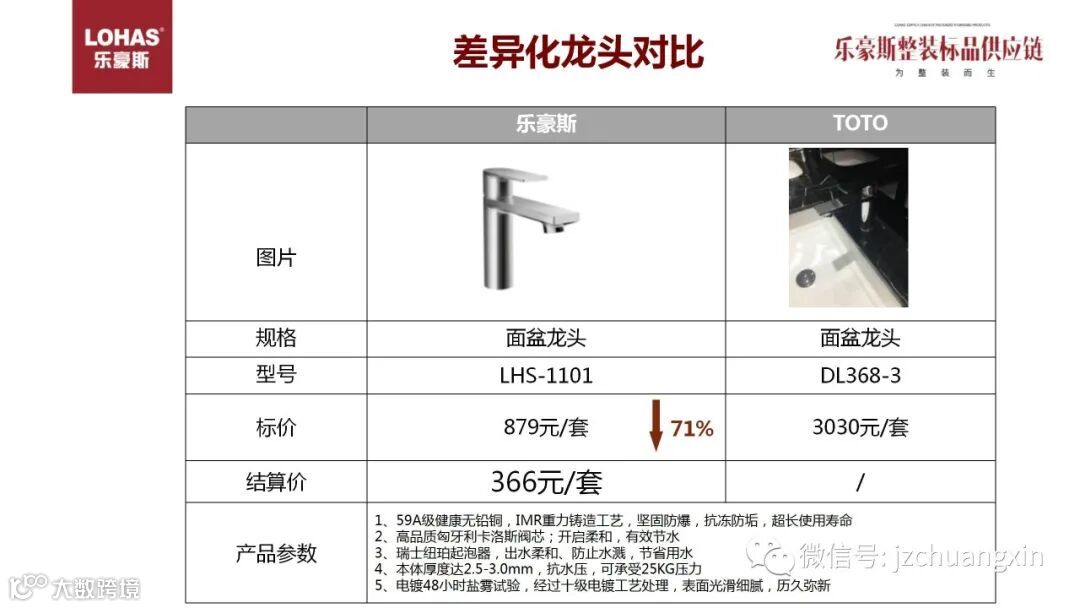 TOTO同款面盆龙头,外形品质相差无几,几乎看不出分别,价格相差71%。