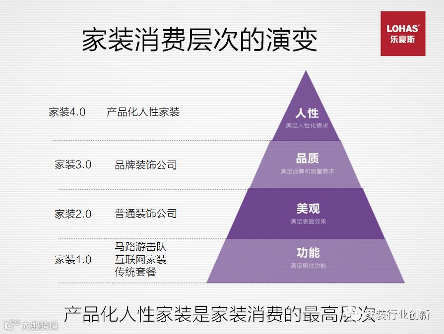 在消费升级的背景下,家装行业也面临新一轮的洗牌。众所周知,家装行业从90年代初发展到现在,历经了4个发展阶段。从最初的家装1.0满功足基本的居住功能→2.0美观家装→3.0品质家装→4.0人性化整装。所谓人性化家装就是在满足家庭装修的美观和品质的基础上以人为核心出发点,在家装平面规划设计、硬装细节设计、收纳设计、软装家具设计、智能家居设计中,充分考虑居住者生活习惯,操作便利性和实用性,为客户提供拎包入住的整体居家生活解决方案。
