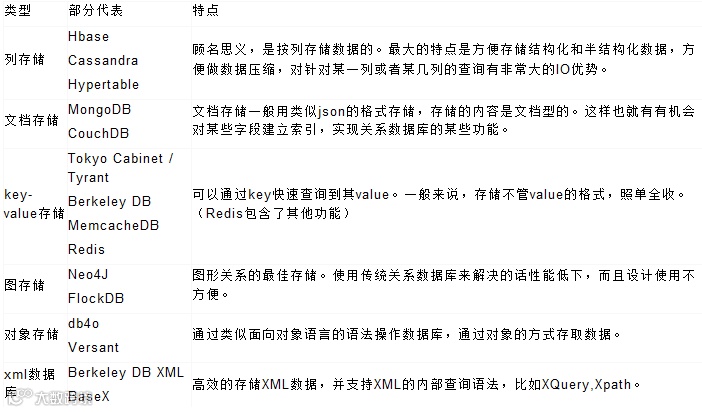 NoSQL数据库种类繁多,但是一个共同的特点都是去掉关系数据库的关系型特性。数据之间无关系,这样就非常容易扩展。也无形之间,在架构的层面上带来了可扩展的能力。