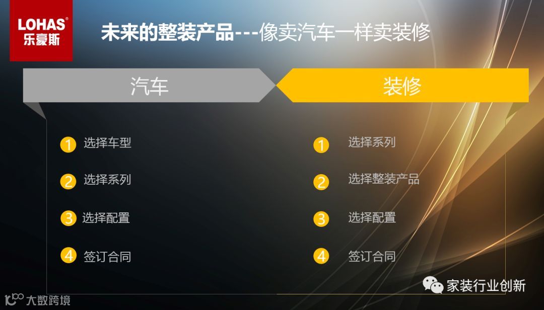对于整装的发展,周新总结道:低成本战略的同质化整装必然产生价格战,所有的上市公司都是差异化战略,提供差异化价值的整装公司才有未来;未来的整装产品---像卖汽车一样卖装修;