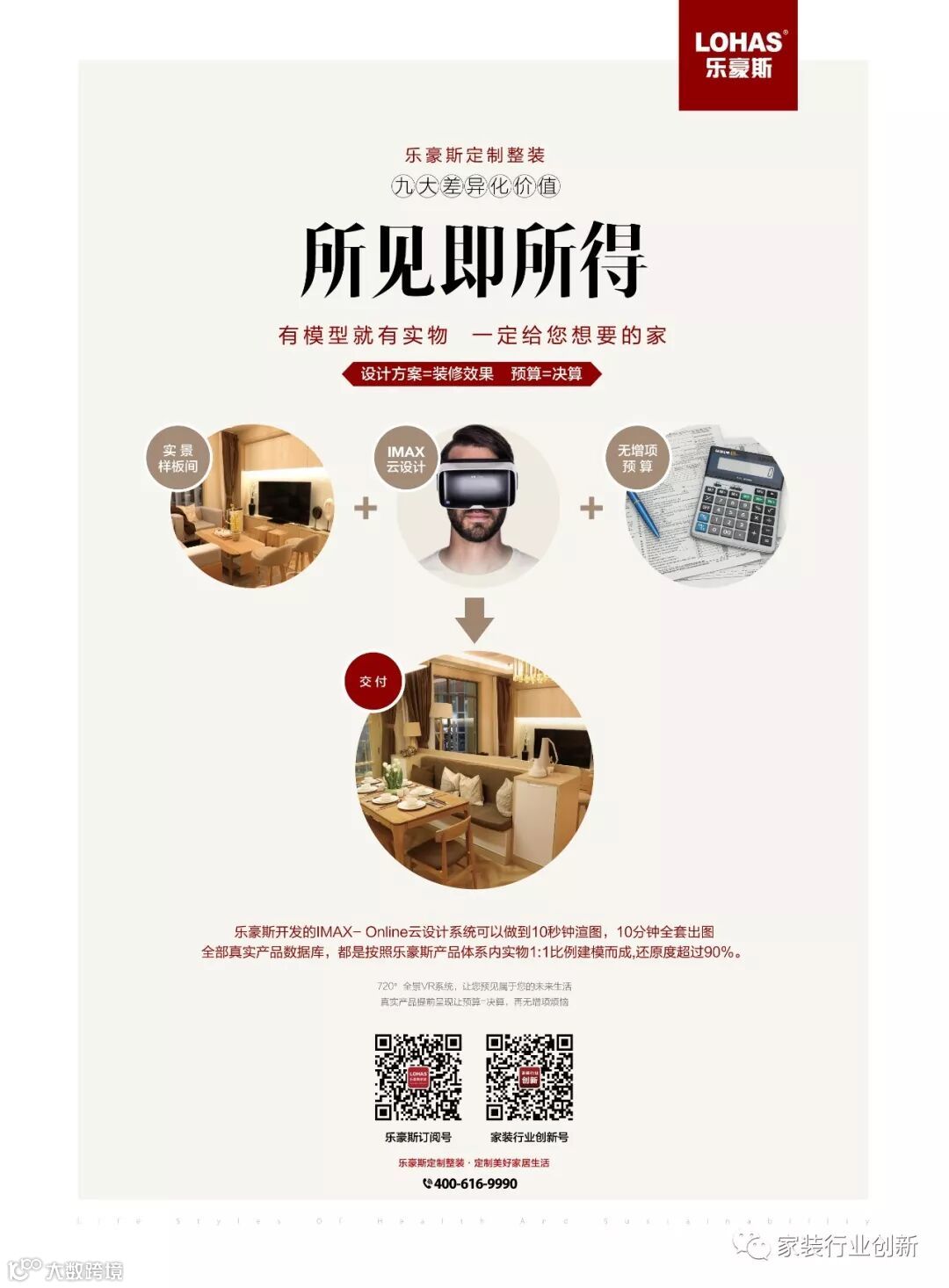 凯文·凯利在其名作《失控》的开头就先知般写道:“飞速的发展就发生在我眼前,我开始相信,一切皆有可能。”实景样板间、IMAX云设计、无增项预算、完美交付……乐豪斯的一系列浸入式体验让家装实现真正意义上的“所见即所得”。