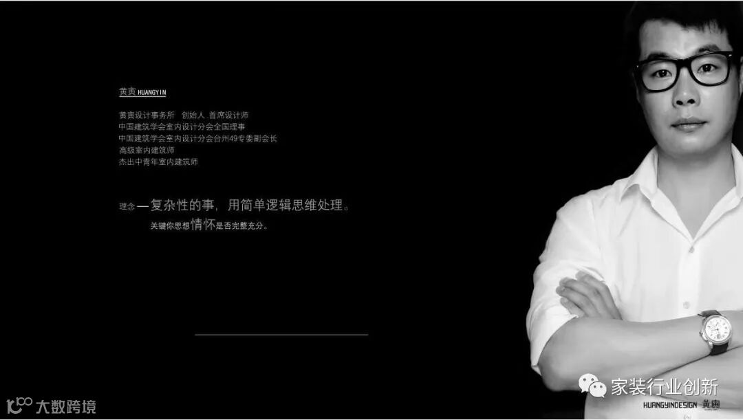80后新锐设计师,高级室内建筑师,从大一就开始实习进入室内设计领域,大四(2006年)创立个人设计事务所——黄寅设计事务所。中装协设计委员会专业会员、中国建筑学会室内设计会员。获得的荣誉称号譬如有:中国建筑装饰协会设计委员会“中国最具商业价值设计50强”、“全国第四批杰出中青年室内建筑师”、2010-2011年年度十大杰出设计师……顶着诸多顶级头衔的他名不虚传,多个作品被编入一些荣誉作品书籍。