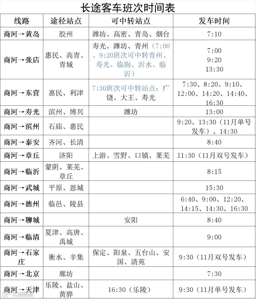 表,快来收藏吧!请持续关注微信公众号【山商交运】&【商河县汽车站】,以最新通知为准。如有疑问,欢迎拨打