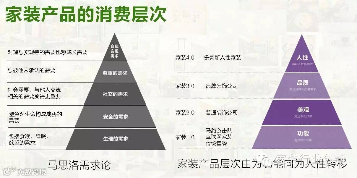 家装消费向人性化升级是从马斯洛需求理论推演过来的。通俗点说:人性化家装=功能+颜值+品质+人性化细节