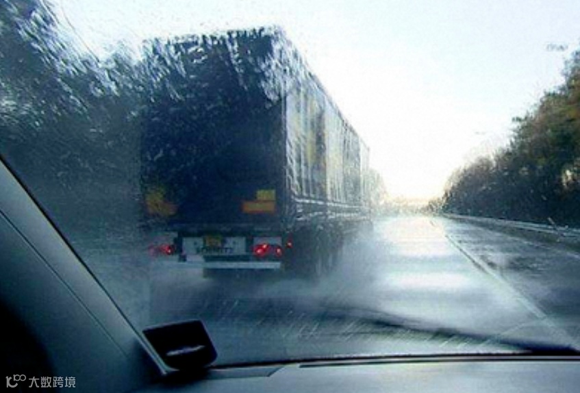 远离大型车辆,避免因大型车溅起的雨水干扰驾驶。
