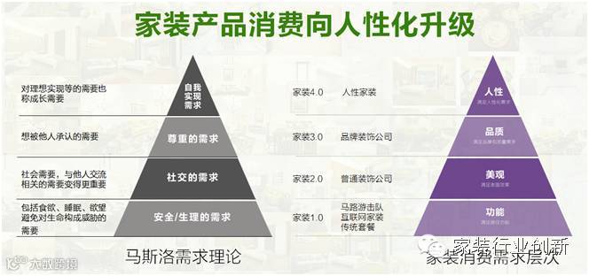 从家装1.0到家装4.0的发展轨迹来看,与马斯洛需求理论是相符的。从马斯洛需求理论推导出家装的消费层次是满足功能→满足美观→满足品质→满足人性化。 在消费升级时代家装4.0会更好的满足客户的需求,必然会有强大的生命力。