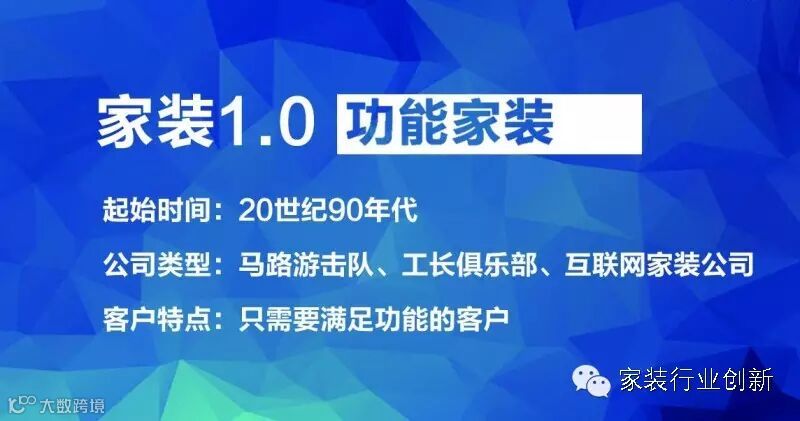 装修以满足使用功能为主,好不好看不重要。这是家装1.0时代。其实现在很多面向屌丝的互联网家装就是满足功能需求的1.0家装。屌丝作为一个消费群体,是不会忠诚的,因为屌丝其实最讨厌自己屌丝的定位,他们比起其他阶层更需要高品质产品来拯救自己。下次装修,就会毫不犹豫的转换门庭。老周认为面向屌丝的互联网家装很快就会走向末路。