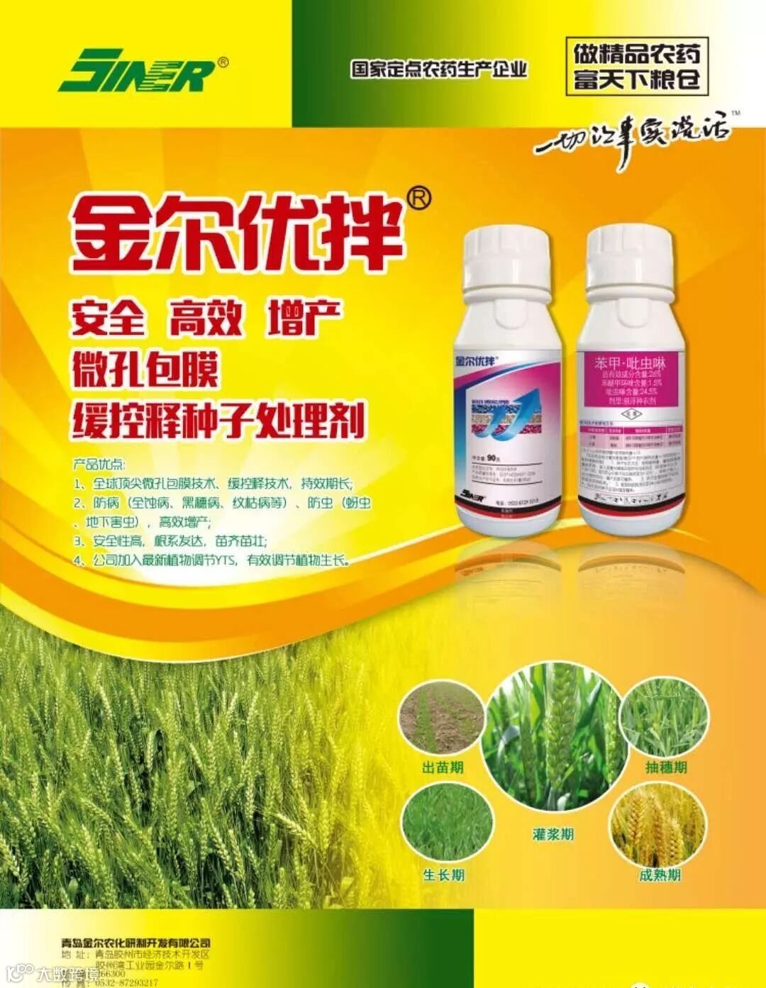 为了帮助大家选择一个优秀的拌种剂产品,免去大家的后顾之忧,现在为大家推荐一个优秀的拌种剂产品——青岛金尔公司的“优拌”(26%苯甲·吡虫啉悬浮种衣剂)。