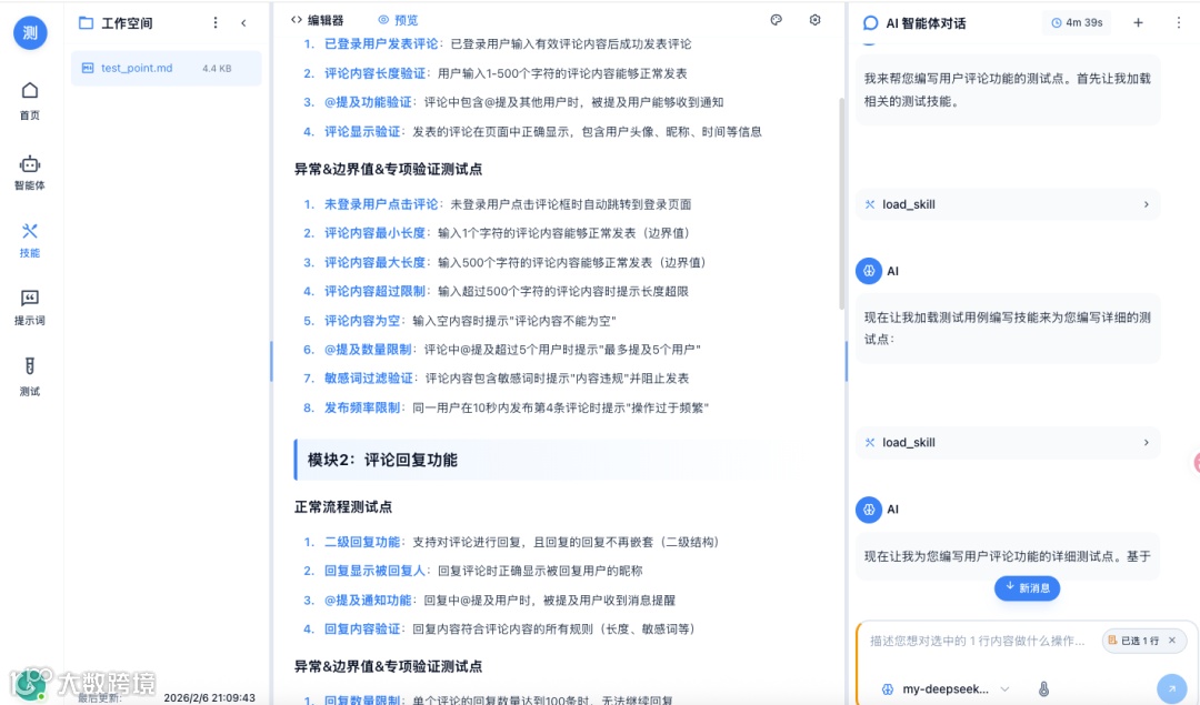 举个例子,当你让它"分析这个需求文档并生成测试用例"时,AI可能会: