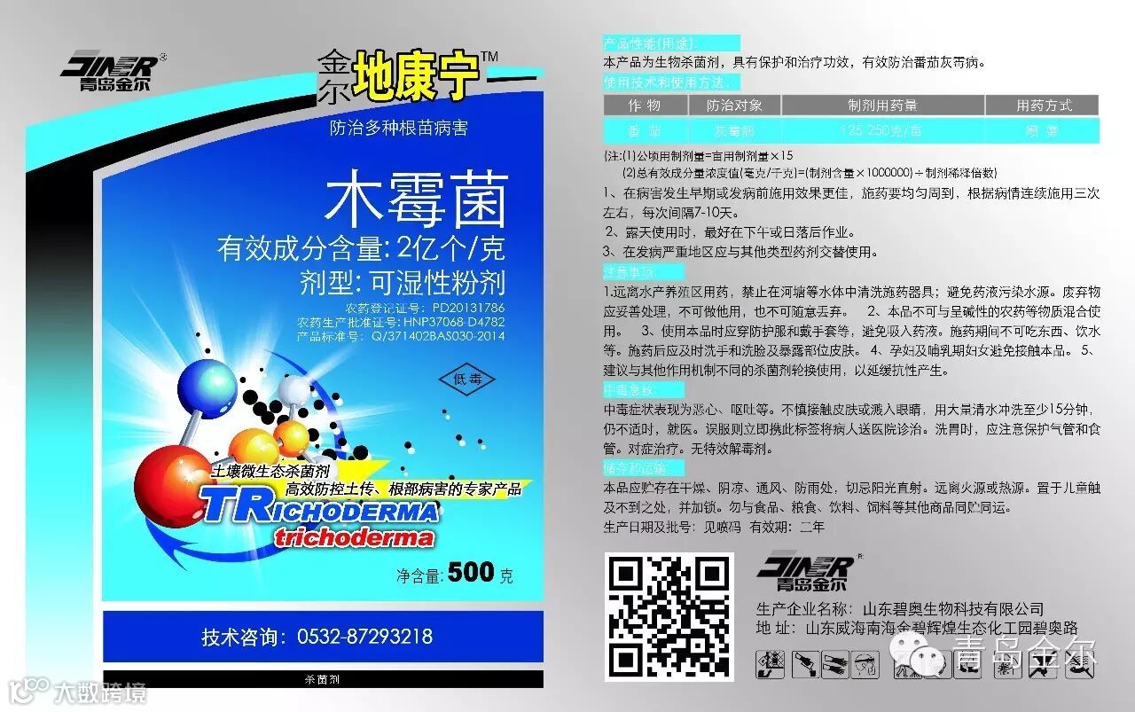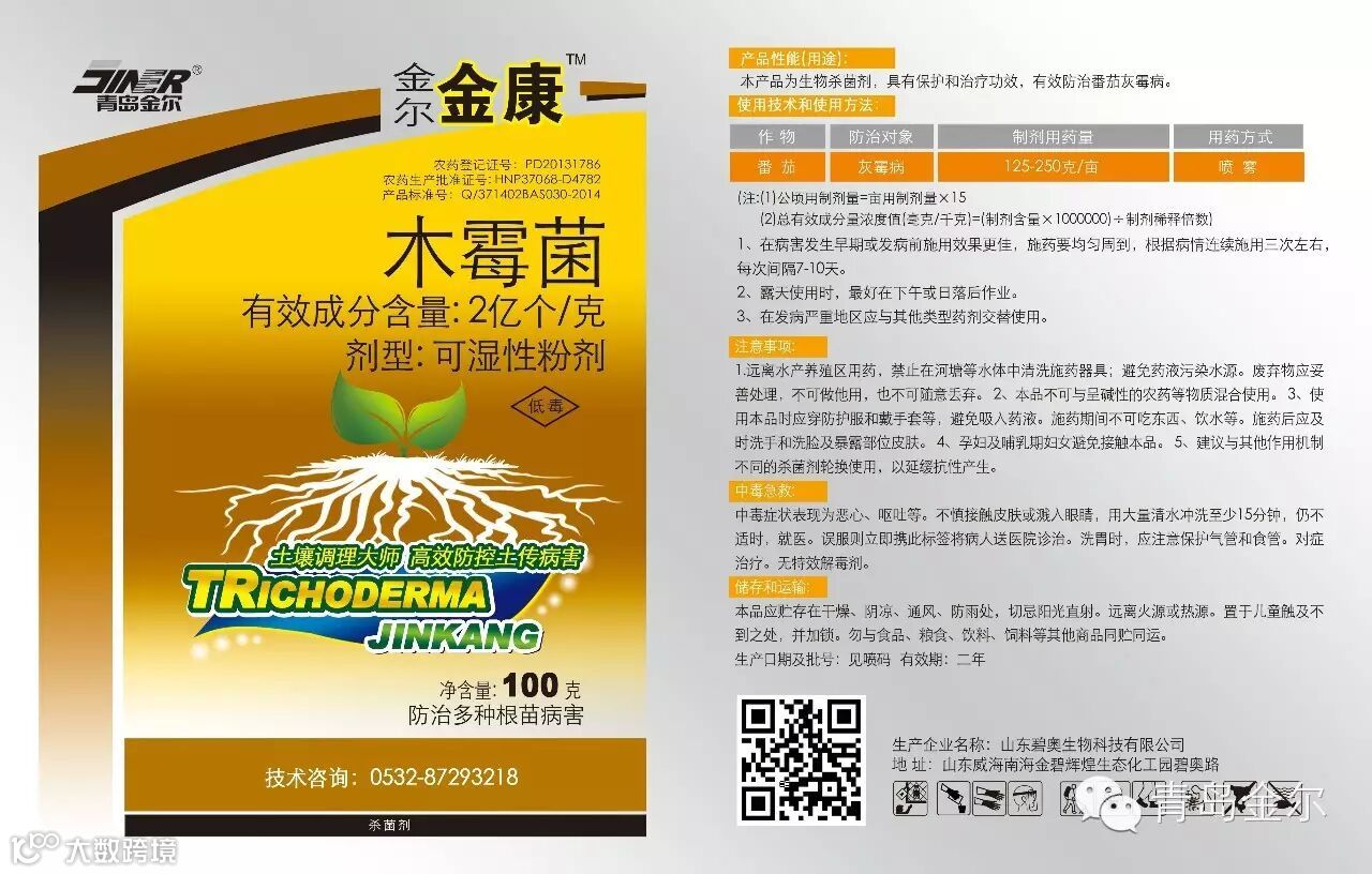 金康、地康宁和金尔地旺是金尔集团公司2016年重点推广产品,该产品主要成分是绿色木霉菌,主要用于防治根腐病、立枯病、猝倒病、枯萎病、黄萎病、炭疽病、疮痂病等土传性真菌病害,同时对酸化土壤和板结土壤具有很好的改良作用,能疏松土壤,促进作物根系生长,提高作物长势,提高作物产量等。