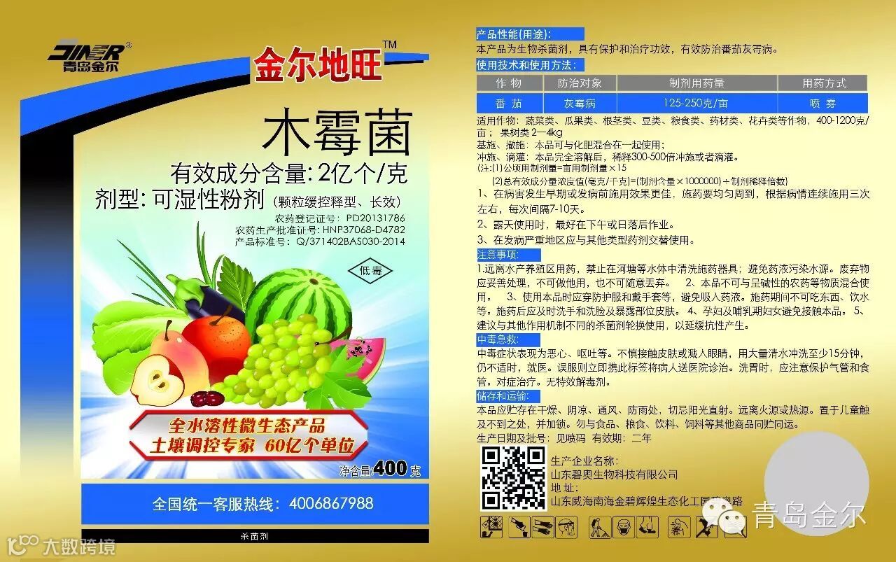 2、使用时最终要让绿色木霉菌使用在土壤中,喷雾时避免喷在茎叶上;