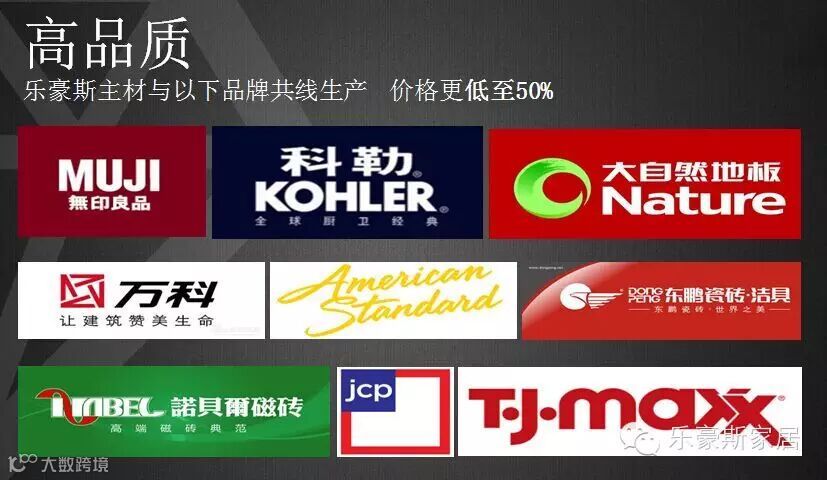 乐豪斯F2C模式,从工厂直接到消费者,没有中间环节。乐享家2.0所包含的无印良品品质的沙发,比肩科勒品质的卫浴五金、万科共线生产的橱柜木门、美国顶级百货Jcpenney御用窗帘家纺、大自然品质的耐磨环保地板、诺贝尔品质的3D精码喷墨瓷砖……全部产品都是精挑细选的,价格比市场价低30%左右,真正做到了好产品,低价格。