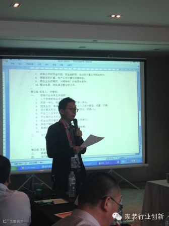 会议开始的破冰环节,大家围绕“家装行业的未来五年走势、当下哪些因素让你的企业产生危机,”展开第一轮的头脑风暴,每六个人为一小组,分别发表自己的观点,最后由组长进行总结。