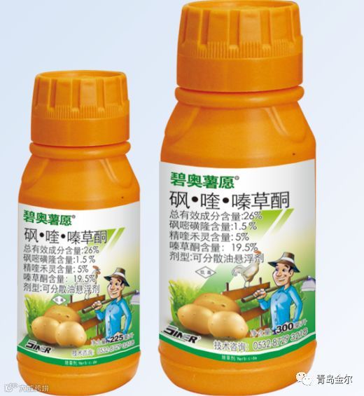 更广谱:三元复配,杀草谱广,禾阔莎通除,对马铃薯田中常见的各种杂草均有彻底根除的防效;