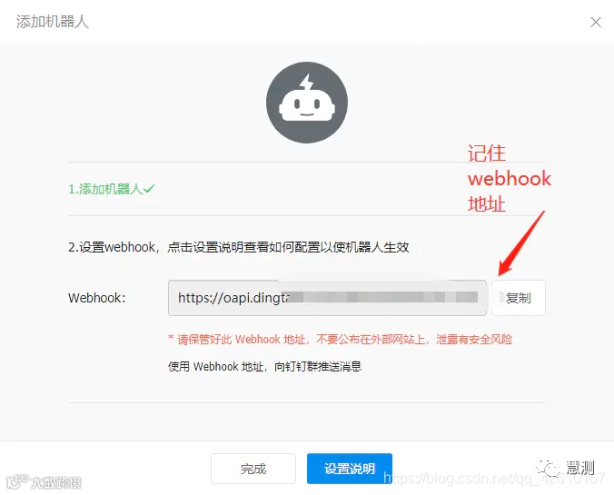 1.4、复制钉钉机器人webhook