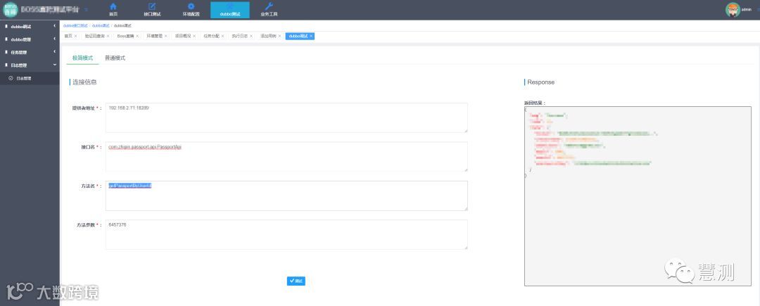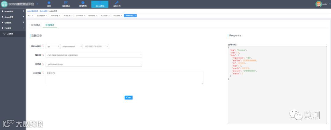 3、最终测试人员只需要输入参数即可,调用dubbo接口