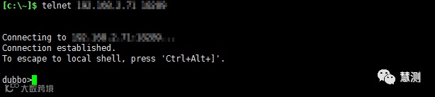telnetlocalhost20880:输入命令点击enter直接进入dubbo