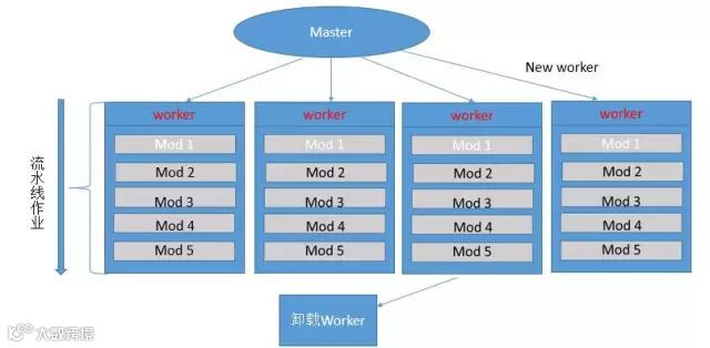2.高可靠性:主控进程和worker是同步实现的,一个worker出现问题,会立刻启动另一个worker。