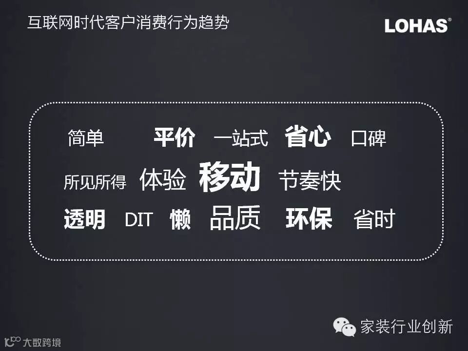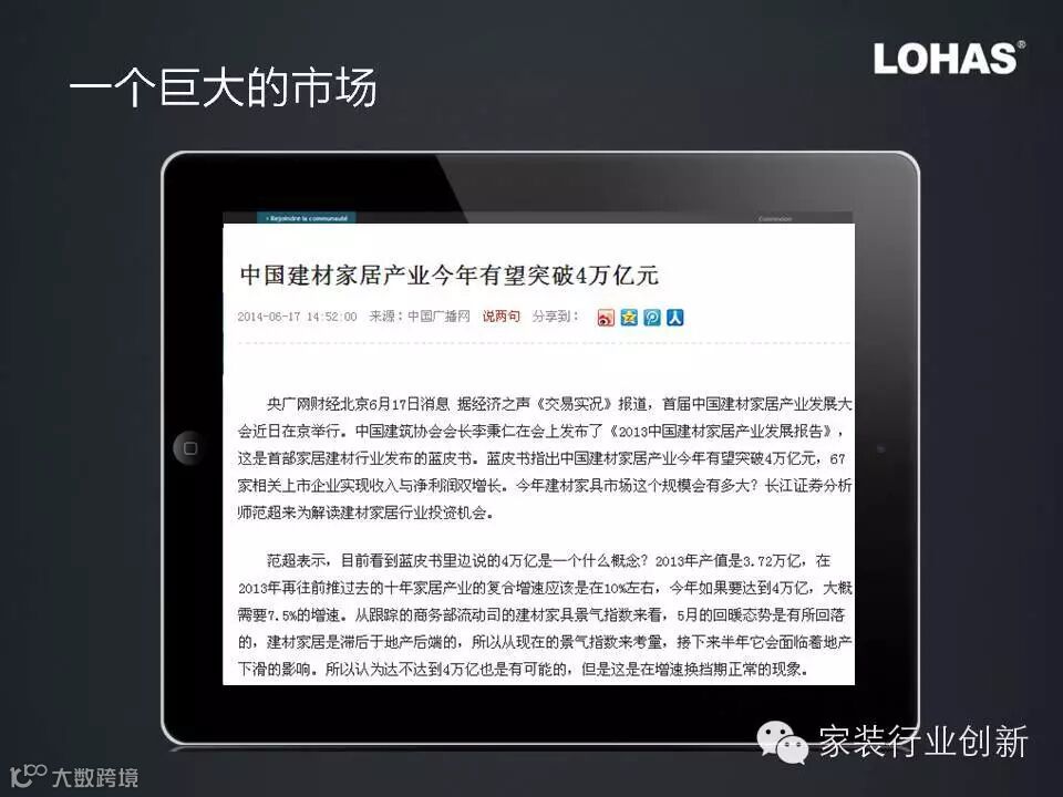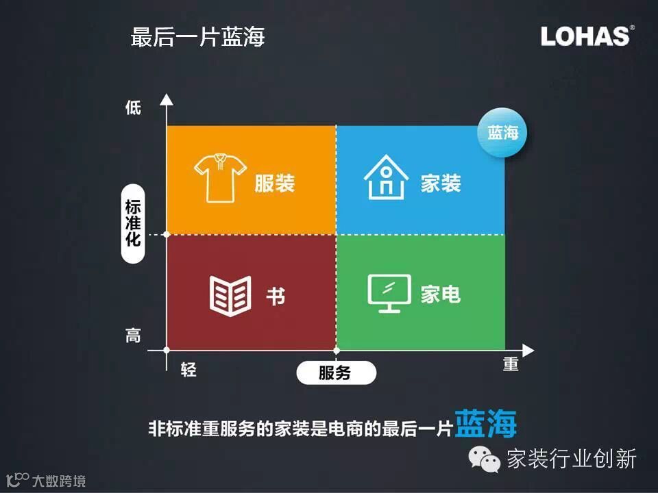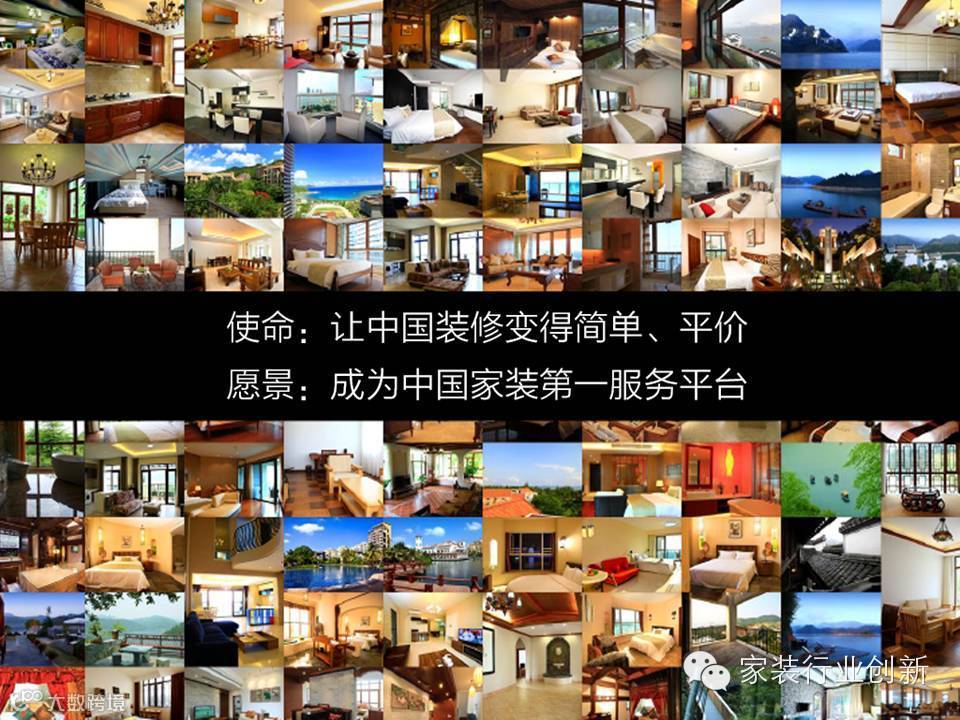 互联网从高标准轻服务的书籍开始改变了诸多行业,如今家装行业称为互联网要改变的最后一个行业,也是建材、家居、家装行业的最后一片蓝海,最后一个机会,2014年是这个机会的窗口期,这个窗口期一定不会太长,把握机会最为关键。