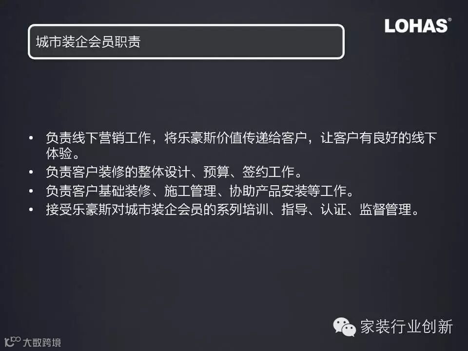 加入乐豪斯城市装企会员可以获得乐豪斯的平台+软件+供应链的支持,平台方面可获得天猫施工包的订单,开展天猫全国设计业务,为线下导入流量。软件方面可获得提升客户体验和设计效率的软件获得差异化竞争优势。供应链方面自己无需整合即可获得较高的主材家居产品利润。最低3万元即可加盟乐豪斯,获得平台资源和差异化优势。