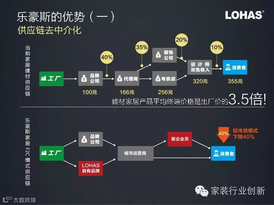 乐豪斯创新的F2C+O2O模式减少了中间环节,为终端节省了40%左右的成本,这就是互联网的价值。